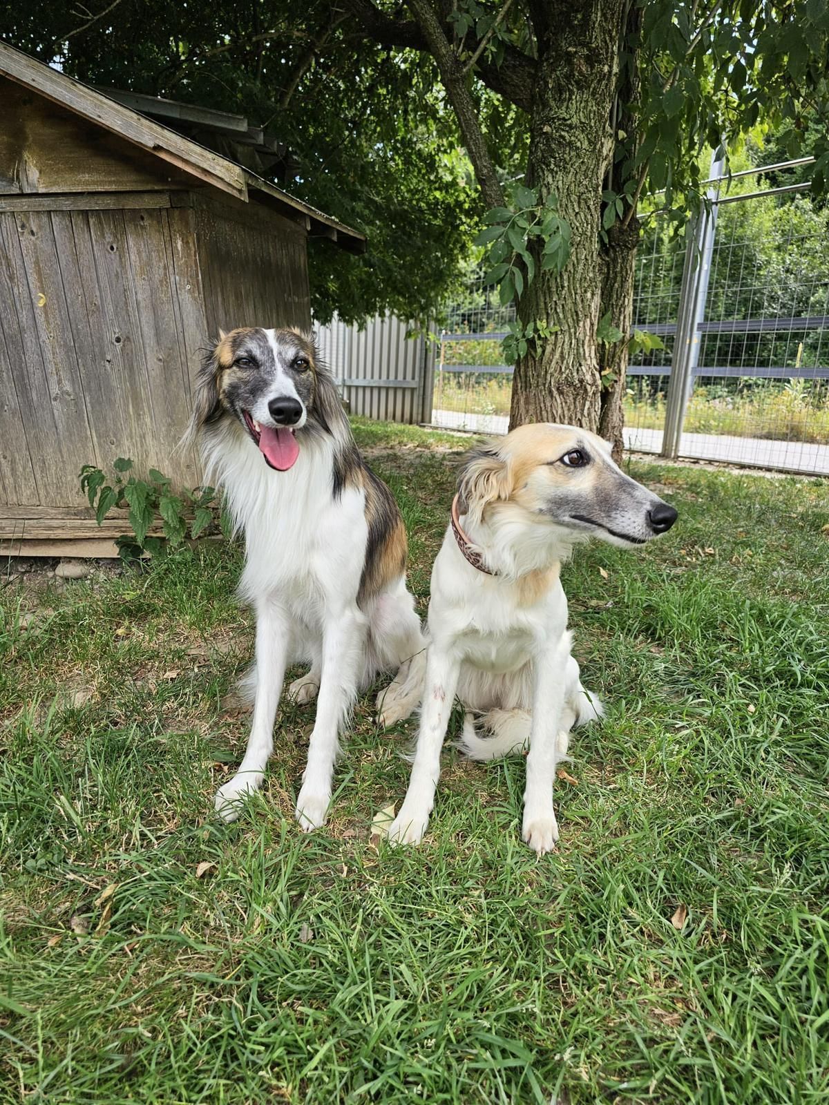 Am Samstag 24.08.2024, nahmen wir mit Bahira und Ayden an der Jahresausstellung der Silken Windsprites in Freiburg in Breisgau bei sonnigem Wetter teil. In der offenen Klasse konnten beide Hunde den Richter überzeugen und erhielten jeweils die Auszeichnung V1 "vorzüglich", was uns mit Stolz erfüllte und grosse Freude bereitete. In den Ehrungen am Ende des Tages wurde Bahira zusätzlich noch mit dem Preis «Schönster Kopf Hünding» geehrt. In der Paarklasse konnten Bahira und Ayden gemeinsam durch ihren harmonischen Auftritt und ihre enge Bindung überzeugen und gewannen den Preis «Bestes Paar», welcher auf einer Ehrenrunde mit beiden gefeiert wurde. Und was wäre ein Blogbeitrag ohne ein paar aktuelle Fotos unserer kleinen Welpen? 🐶 Sie wachsen prächtig heran und entwickeln sich zu kleinen Persönlichkeiten, die bereits jetzt ihren einzigartigen Charme zeigen. Schaut euch die Bilder an. Wir sind uns sicher, dass sie auch euch zum Lächeln bringen werden!